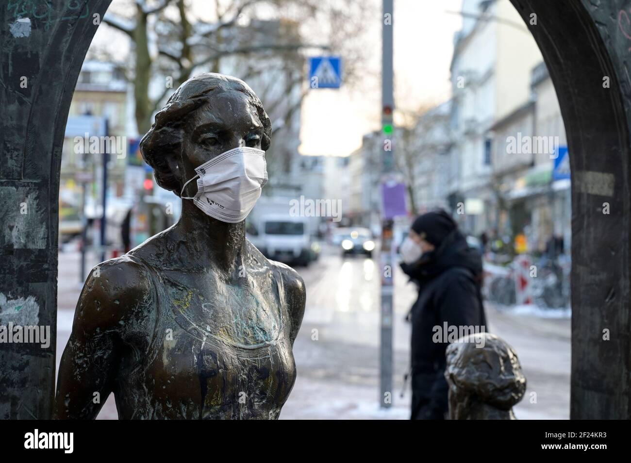 Germany Hamburg Corona Pandemic Woman Sculpture With Medical Mask Deutschland Hamburg Corona Pandemie Skulptur Mit Maske Stock Photo Alamy