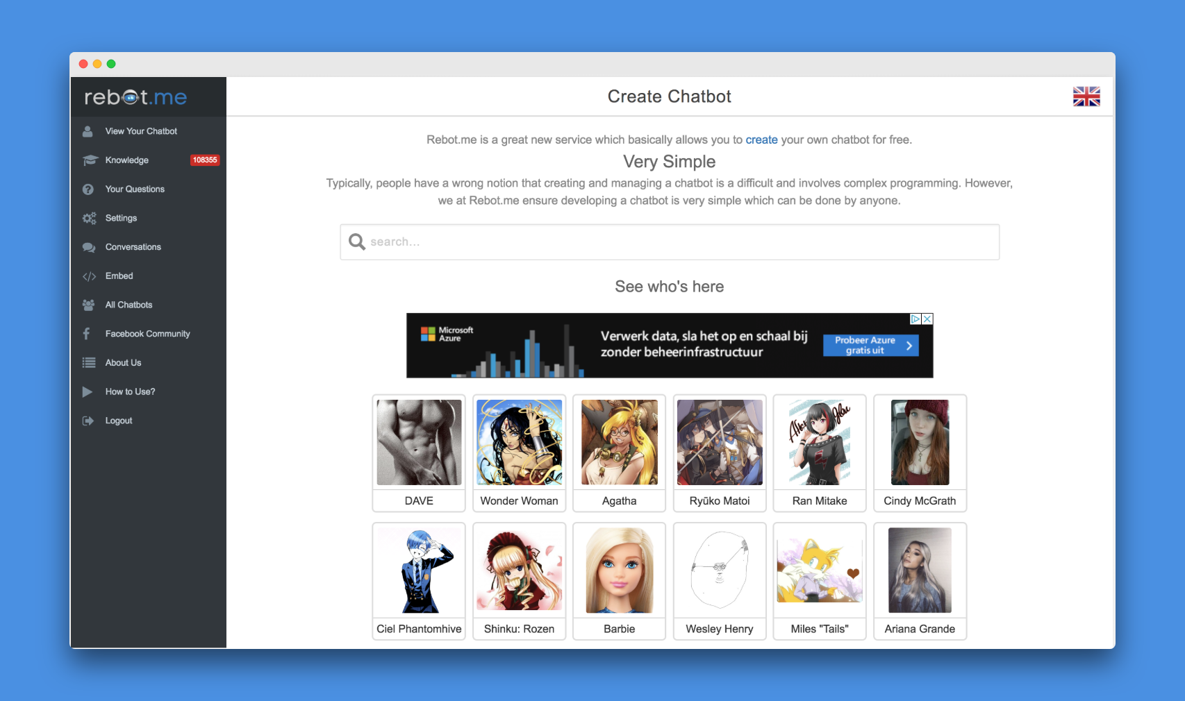 Rebotme is service which allow people to create their own chat bots. 9928 likes 4 talking about this. After that you can start creating your personal chatbot.